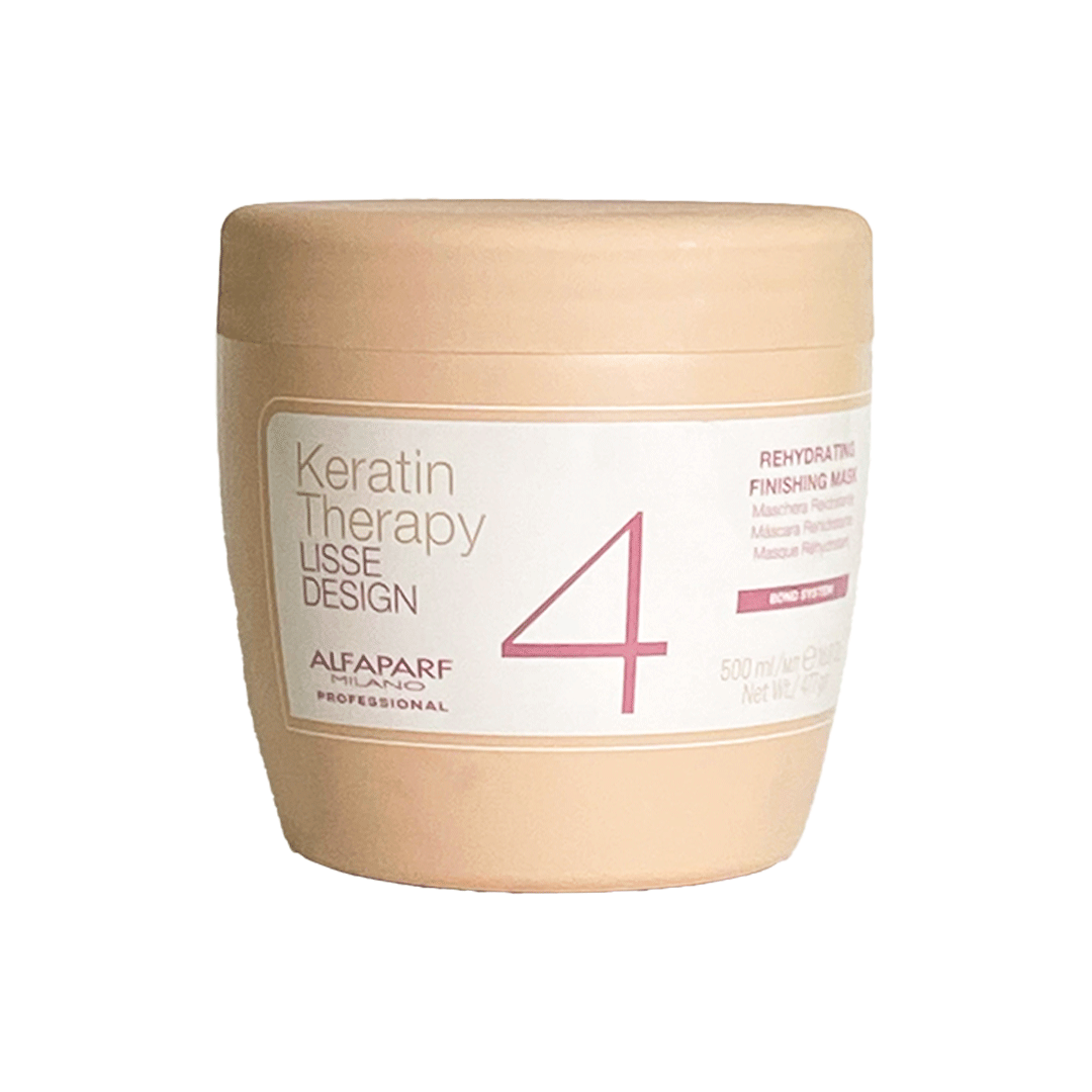 Alfaparf Milano Keratin Therapy Lisse Design Rehydrating Finishing Mask este pasul final (Step 4) din tratamentul profesional cu keratină. Formula sa intens hidratantă reface nivelul optim de umiditate al părului, închide cuticula și prelungește efectul de îndreptare și disciplinare obținut în salon. Textura cremoasă pătrunde în firul de păr, lăsându-l catifelat, strălucitor și ușor de coafat.