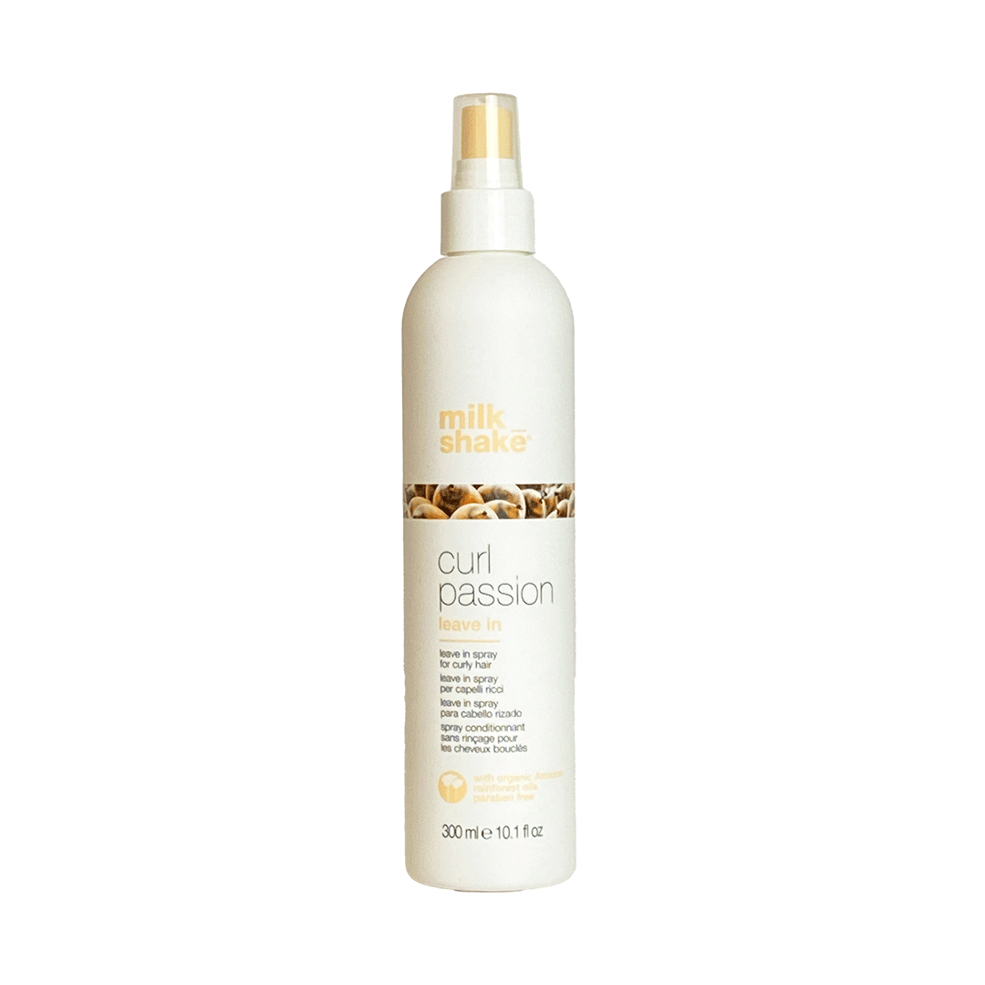 Milk_Shake Curl Passion Leave-In este un spray profesional fără clătire, conceput special pentru a defini, revitaliza și controla buclele naturale sau ondulațiile. Formula sa lejeră, îmbogățită cu extracte de fructe, proteine din lapte și uleiuri organice (jojoba și avocado), oferă hidratare profundă, reduce electrizarea și menține forma buclelor pe tot parcursul zilei.